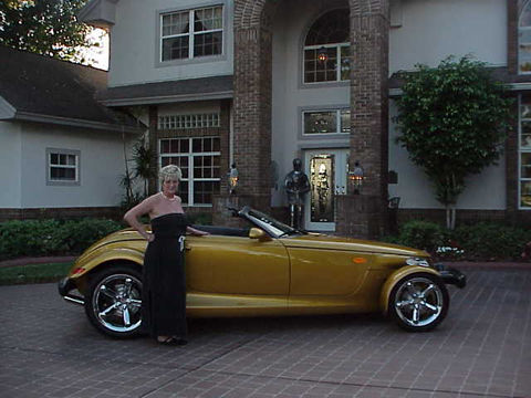 Well-I missed my 2001 silver Prowler so much, after 2 weeks, that I couldnt stand it anymore, & so when I saw this BRAND NEW- untitled 2002-sitting on a new car Chrysler showroom, in NY, with my favorite brand new Inca Gold color as well- I just couldnt resist- especially after I found out it has the full 3 year factory Chrysler warrany- starting around Nov.18th/03 of course. I will be driving this as my daily car, 10 miles a day, or so, which will keep the miles super super low indeed. These cars are awesome to drive, handle like a race car, & a lot faster than I ever imagined. Glove soft Agate Charcoal leather seats, that fit like a glove, and the automatic/stick shift feature is the best of both worlds, run flat-huge tires-P295/40HR20 in the rear & P225/45HR17 in front, on gorgeous chrome rims, only 2838 pounds, & has a 320 watt- 7 Infinity speaker am/fm stereo with 6 disc CD player, German Haartz canvas top with glass rear window, rear view mirror with computer display inside, dual air bags, shift knob is leather with a chrome shifter boot, 4 wheel disc brakes, overdrive tranny, & tranny is rear mounted, for better traction & more legroom inside, power windows, mirrors, brakes, steering & rear hatch release, Indy race car front suspension-really !!, full all aluminum frame, alum. driveshaft, alum. fuel inj., single overhead cam 24valve 254hp 3.5 liter V6-no low brow iron block V8 here!ice cold air conditioning & heater classic styled gauges with cool tach on the column, cruise & tilt in wheel & stereo controls also behind the steer wheel, huge dual exhaust, keyless entry, alarm system tinted glass, rear defroster, intermit. wipers, & much more. its just the coolest car that is out there, in my opinion. This is the last year ever built- period, & the only year with the new Inca Gold color- so everyone knows its a 2002. Warranty is transferable on this car as well- which is worth its weight in Inca Gold- Return to Bob's Classics, Inc. or What's In Stock. Give us a call at 727-581-9406 |
