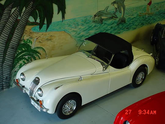 This is one of the most sought after Jaguar replicas of all times, from Antique & Collectibles, in Buffalo, New York. They have been around a very long time & are still building these cars. This car was finished & titled in 1990 & titled as a 1990 Custom. very authentic looking cars, & they use a number of exact parts like the originals. This one is powered by a very peppy Ford 302 V8 5.0 liter engine with a 4 speed manual transmission, & has the rare power brakes and steering, that most dont have. weight is 2660 pounds, so its fine for the major highways, 3 rear view mirrors, chrome rims with wire baskets, amber marker lights,Jaguar emblem on grille,solid wood dash & steering wheel,am/fm/stereo with cassette, 7 white face classic styled guages, black vinyl seats,black canvas top & side curtains,& black zippered tonneau cover,2 piece windshield,cream gelcoat finish, rear trunk,solid cast aluminum bumpers,front disc brakes,etc. these cars are getting very hard to find,especially with the V8 & 5 speed.cost over $35,000. to build. return to Bob's Classics, Inc. or What's In Stock. Give us a call at 727-581-9406 |