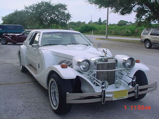 Factory built on a brand new Ford Mustang donor car, & Zimmer is back in business again, so most parts are still available & the new 2005 Zimmer coupes are now around $100,000. This car is showing low miles-but we cant verify or document the actual miles as being for real !!. has 2 tone Recaro seats, & a nice Nardi signature edition wood steering wheel, teak on the running boards & leather trunk straps, side supercharger pipes, 4 trumpet horns, twin fog lamps & dual side mounted cowl lights, badge bar, $850. gold eagle hood ornament- that's solid bronze & gold plated, 4 real wire wheels, wood dash & consol, 18 feet long, wider white radial tires, 4 seats, tinted windows, pinstripes, etched glass wind deflectors, tilt & cruise, air conditioned & heater, power seats, windows, locks, antenna, steering & brakes, powered by a peppy 302 cubic inch-5.0 liter Ford V8 with C4 automatic transmission, front disc brakes, and posi rear end, super thick heavy fiberglass body, with steel doors & roof, padded white opera roof, opera windows, opera lights & side landau bars, am/fm/stereo with 6 disc cd changer in the trunk, 2 piece stainless bumpers. these are real head turners, & have the styling of the million dollar + 1936 Mercedes 540k-with a few other models tossed in. these are great cars to use as daily drivers, & its easy to work on, with most parts from Ford. return to Bob's Classics, Inc. or What's In Stock. Give us a call at 727-581-9406 |