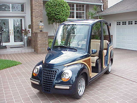 Well- we have had tons of cool golf carts over the years, but none quite as neat as this one from Lido Motors. Cart was designed by Lee Iacocca & Western Golf Car, & these are 100% street legal on roads with posted speed limits of up to 35mph.With the 13" rims & tires, it will do up to 25mph, with only 48V batteries & it has 55 hours of use, and thats a large improvement over other similar street legal carts. This car/cart,looks similar to a PT Cruiser Woody & is very rare & has been featured in many upscale magazines, very rich Midnight Blue body color, that shows up the Woody sides-very well. loaded with cool goodies like a super am/fm stereo with CD player, locking front trunk, rear storage space for clubs,or groceries & recreation equipement, has safety glass windshield, wiper, side mirrors, 4 seats with seat belts, adjustable front seats, locking glove box, drink holders, grab handles, floor mats, light up licence plate holder, horn, 3rd brake light, hazard lights, turn signals, front & rear lights, DC motor with rear wheel drive, rack & pinion steering, hydraulic brakes, 6-8 hour recharge time, it has a beautiful full size auto wood steering wheel with tilt column, high & low beams, cooling interior fans, lighter, & an external charger and deep dish chrome rims, back up alarm, & lots more cool goodies & its titled like a regular car, with DMV. will have a clear Florida title. These are a real blast to drive, & turn heads everywhere you go. Return to Bob's Classics, Inc. or What's In Stock. Give us a call at 727-581-9406 |